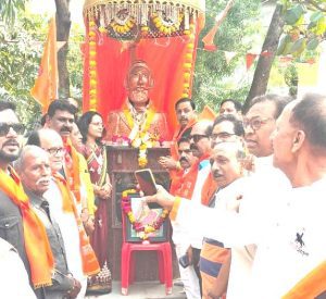 स्वराज स्थापना के महानायक जन-जन के रक्षक छत्रपति शिवाजी महाराज की जयंती के अवसर पर गुरुवार को नगर निगम मुख्यालय स्थित उद्यान में छत्रपति शिवाजी महाराज की प्रतिमा पर महापौर मुकेश टटवाल द्वारा माल्यार्पण किया गया