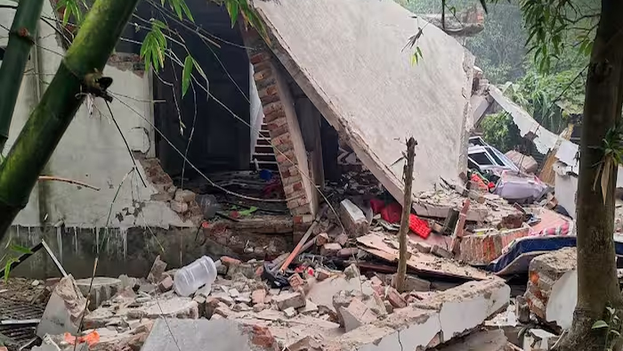 मुर्शिदाबाद:(स्वदेश mp न्यूज़… राजेश सिंह भदौरिया बंटी) पश्चिम बंगाल के मुर्शिदाबाद के एक घर में ब्लास्ट होने से तीन लोगों की मौत हो गई है. ये विस्फोट घर में बम फटने से हुआ है. ब्लास्ट इतना तेज था कि घर की छत ढह गई और आस पड़ोस के लोगों में भी डर का माहौल बना हुआ है. ब्लास्ट की सूचना मिलते ही पुलिस मौके पर पहुंची और अब मामले की जांच करनी है.