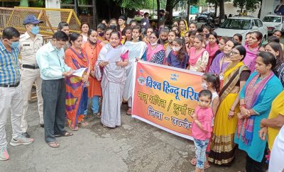 उज्जैन।(स्वदेश mp न्यूज़… राजेश सिंह भदौरिया बंटी) विश्व हिंदू परिषद की मातृशक्ति दुर्गा वाहिनी मालवा प्रांत ने उज्जैन में प्रदर्शन करते हुए मप्र के मुख्यमंत्री शिवराज सिंह चौहान के नाम एक ज्ञापन कलेक्टोरेट के बाहर एकत्रित होकर प्रशासनिक अधिकारी को…