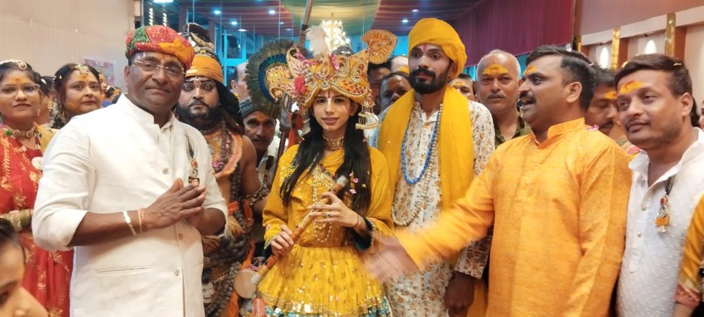 अग्रवंशीय वूमेंस क्लब की अध्यक्ष श्रीमती रितु मयूर अग्रवाल ने बताया कि भगवान श्री कृष्णा और राधा रानी के विवाह का दिव्य और भव्य आयोजन किया गया जिसमें प्रसिद्ध कथाचार्य अनिल शर्मा के श्रीमुख से संपूर्ण कथा का वृतांत सभी अग्र बंधु और मात्र शक्तियों ने श्रवण किया। स्थानीय महाकाल परिसर में आयोजित इस कार्यक्रम में बड़ी संख्या में अग्र समाज जन उपस्थित थे। कार्यक्रम में भगवान श्री कृष्ण की भांडीर वन से भव्य बारात निकाली गई और हल्दी मेहंदी की रस्म की गई साथ ही वृंदावन के सुप्रसिद्ध कलाकारों द्वारा रास नृत्य भी प्रस्तुत किया गया। बारातियों का स्वागत शैलेंद्र मित्तल ( इस्कॉन), ललिता मित्तल, श्रीमती बीना गर्ग, मनीषा शिव अग्रवाल, हेमलता गुप्ता, मंजू अग्रवाल, मोना अग्रवाल,मनीषा अग्रवाल (वी डी), निकिता बजाज,शारदा गर्ग,सपना अग्रवाल,नीलम मित्तल,नम्रता अग्रवाल, पलक बंसल,भारती पारसमणी, अमिता बजाज कविता अग्रवाल, अन्नू अग्रवाल,शिव अग्रवाल (बेसन), आनंद गर्ग,प्रतीक बंसल,अशोक सिंहल, मनोहर गर्ग,डॉ राजेंद्र अग्रवाल, संजय अग्रवाल (वी डी ), विकास अग्रवाल, हरीश मित्तल आदि ने किया इस अवसर पर अग्रवाल समाज के वरिष्ठ जन संस्था के संरक्षक जगदीश जी अग्रवाल,श्याम बंसल,पंचायत न्यास के अध्यक्ष निमेष अग्रवाल, सचिव दीपक मित्तल,लक्ष्मी नारायण गर्ग, संजय अग्रवाल(c a), भगवान दास एरन, सत्यनारायण जी अग्रवाल, विजय गर्ग, राकेश बजाज,शैलेंद्र मित्तल,योगेश गोयल, नवयुवक मंडल अध्यक्ष आयुष अग्रवाल सहित बड़ी संख्या में समाज जन उपस्थित थे। इस अवसर पर सर्वश्रेष्ठ रास नृत्य करने और गोपियां बनकर आने सभी को पुरस्कृत किया गया अंत में आभार मयूर अग्रवाल ने व्यक्त किया।