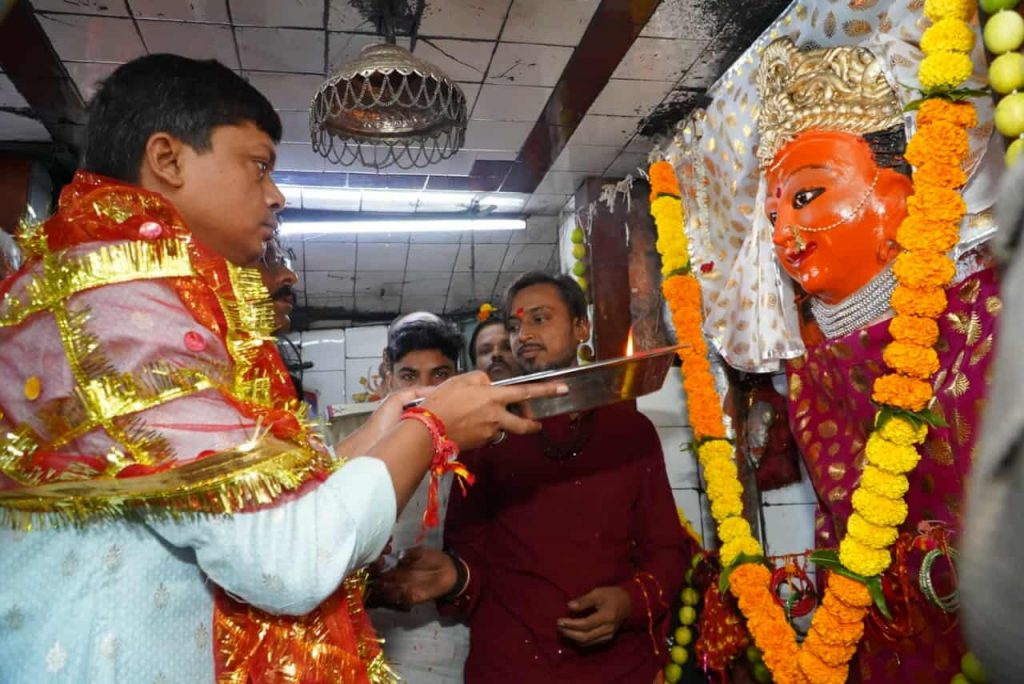 उज्जैन,30 सितंबर।(स्वदेश mp न्यूज़… राजेश सिंह भदौरिया बंटी) मंगलवार को शारदीय नवरात्रि की महाअष्टमी पर सुबह पारंपरिक रूप से शासकीय नगर पूजा की गई। इस दौरान कलेक्टर रौशन कुमार सिंह ने चौबीस खंबा माता मन्दिर पहुंचकर माता को मदिरा की धार चढ़ा कर आरती व पूजन किया। पूजन के बाद कलेक्टर रौशन कुमार सिंह और पुलिस अधीक्षक प्रदीप शर्मा मंदिर से हांडी से मदिरा की धार चढ़ाते हुए आगे बढ़े। चौबीस खंबा मंदिर से सुबह शुरू हुई नगर पूजा का समापन हांडीफोड़ भैरव मंदिर पर हुआ। उल्लेखनीय है कि प्रतिवर्ष शारदीय नवरात्रि के महाअष्टमी पर्व पर परंपरा अनुसार जिला कलेक्टर द्वारा नगर पूजा कर माता से नगर की सुख-समृद्धि और प्राकृतिक प्रकोप से रक्षा की कामना की जाती है। कलेक्टर रौशन कुमार सिंह और पुलिस अधीक्षक प्रदीप शर्मा ने महाअष्टमी पर्व पर माँ हरसिद्ध मंदिर पहुंचकर दर्शन किए और सपरिवार माता का पूजन अर्चन कियाि मंदिर पहुंचकर दर्शन किए और सपरिवार माता का पूजन अर्चन किया।