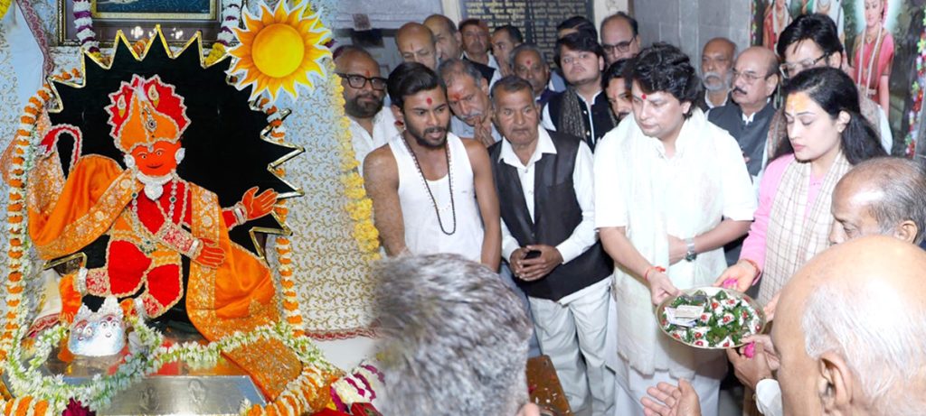 श्री राम कथा व्यास पंडित श्री सुलभ शांतु गुरु महाराज ने बताया अष्टमी पर नौ दिवसीय अखण्ड रामायण पाठ की पूर्णाहुति हुई एवं प्रातः 9 बजे मंगला आरती में 11 हजार बेसन के लड्डुओं का महाभोग लगाया। संध्या 7 बजे प्रसिद्ध कथा वाचिक प्राची देवी, पूर्व मंत्री पारस जैन, निगम सभापति कलावती यादव, पूर्व प्राधिकरण अध्यक्ष जगदीश अग्रवाल, अशोक प्रजापत योगेश शर्मा आदि के आतिथ्य में मुख्य आरती की गई। बता दे कि अष्टमी पर्व के अंतर्गत करीब 15 लाख की क़ीमत से बना चाँदी द्वार भी मंदिर में स्थापित किया गया। जिसके दोनों ओर हनुमानजी के दो बड़े सुंदर स्वरूप आशीर्वाद देते अंकित हैं। गज के साथ ऊं और स्वास्तिक के चिन्ह भी है। भोपाल के एक भक्त ने हनुमान जी की सेवा में इसे अर्पित किया है। अष्टमी के पर्व पर मंदिर प्रांगण को आकर्षक विद्युत लाइटिंग एवं विभिन्न पुष्पों से सजाया गया है। इस अवसर पर भक्त मंडल के हस्तिमल नाहर, बंटी भदौरिया, प्रवीण ठाकुर, अंजनेश शर्मा, रामावतार शर्मा, डॉ. राहुल कटारिया, मनीष कटारिया, सौरभ शर्मा, अतुलित शर्मा सहित बड़ी संख्या में भक्तगण उपस्थित रहे।