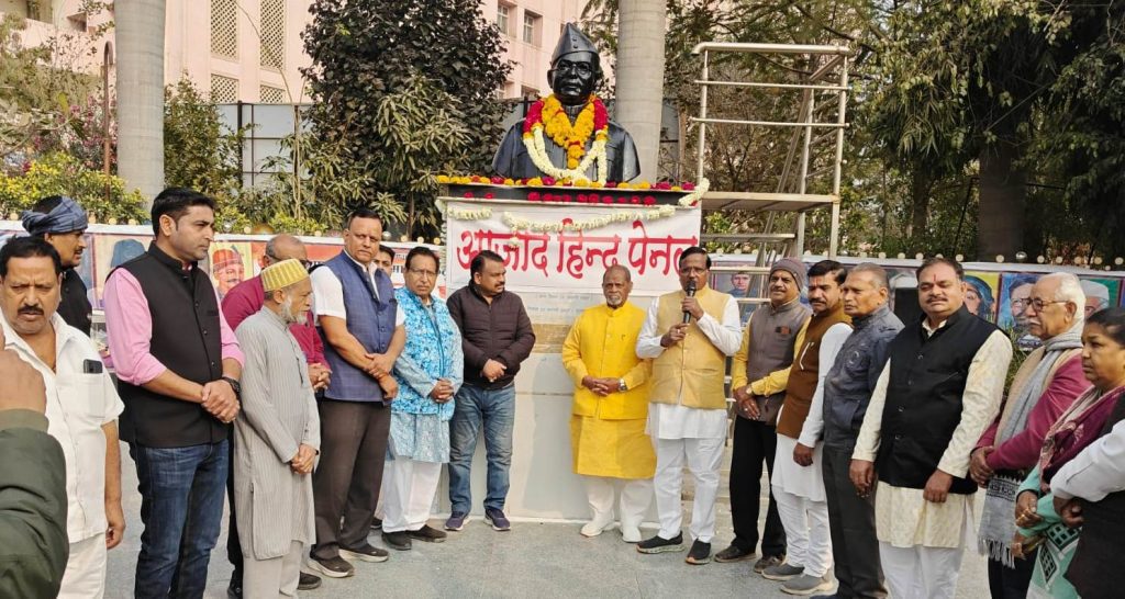 उज्जैन।(स्वदेश mp न्यूज़… राजेश सिंह भदौरिया बंटी) आजाद हिंद पैनल ने आज राष्ट्रवीर क्रांतिकारी नेताजी सुभाषचंद्र बोस की 128वीं जयंती के उपलक्ष में आगर रोड तिराहा पर आजाद हिंद पैनल द्वारा स्थापित नेताजी की प्रतिमा पर माल्यार्पण कर नेताजी की जयंती को पराक्रम दिवस के रूप में मनाया।