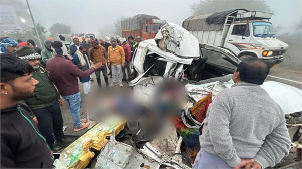 ग्वालियर.(स्वदेश mp न्यूज़… राजेश सिंह भदौरिया बंटी) ग्वालियर में घने कोहरे के बीच भीषण सड़क हादसा हो गया। भिंड रोड हाईवे पर बंटू ढाबा के सामने तेज रफ्तार ट्रक ने कार को जोरदार टक्कर मार दी। हादसा इतना भीषण था कि कार सवार चार लोगों की मौके पर ही मौत हो गई। मृतकों में दो महिलाएं और दो पुरुष शामिल हैं।