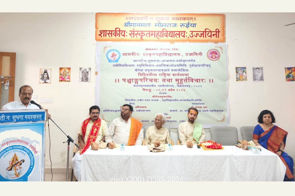उज्जैन।(स्वदेश mp न्यूज़… राजेश सिंह भदौरिया बंटी) शासकीय संस्कृत महाविद्यालय में शनिवार को ‘पंचांग परिचय और मुहूर्त विचार’ पर केंद्रित तीन दिवसीय राष्ट्रीय कार्यशाला का भव्य समापन हुआ। यह आयोजन प्राचार्य डॉ. सीमा शर्मा के मार्गदर्शन में आंतरिक गुणवत्ता आश्वासन प्रकोष्ठ, ज्योतिष विभाग, स्मृति विज्ञान अवंतिका शोध समिति और पूर्व छात्र परिषद के संयुक्त तत्वावधान में किया गया।