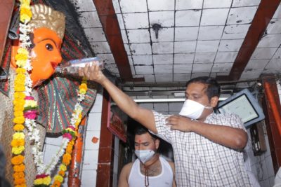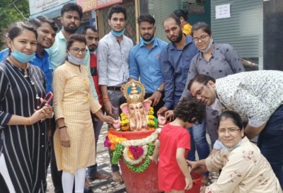 बर्तनों में विसर्जित किया भगवान गणेश को,कोरोना वायरस के चलते खुलकर नहीं मनाया जा सका जश्न.