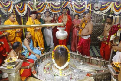उज्जैन । (स्वदेश mp न्यूज़… राजेश सिंह भदौरिया बंटी) शिव नवरात्रि के दूसरे दिन सायं पूजन के पश्चात भगवान महाकाल ने श्री अर्द्धनारीश्वर स्वरूप में शेषनाग धारण कर भक्तों को दर्शन दिये। इसके पूर्व प्रातः शासकीय पुजारी श्री घनश्याम शर्मा…