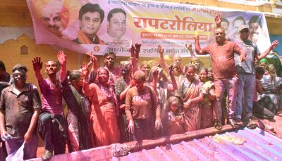 गोपाल मंदिर पर हुआ रापट रोलिया, मथुरा वृंदावन की तरह शहरवासियों ने देशी टमाटर, मुल्तानी मिट्टी और फूलों के रंगों से होली खेली  खेली होली
